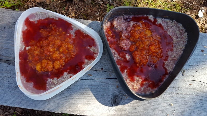 Yö meni ihan mukavasti, vaikkei ihan tasaisella nukuttukaan. Ja aamut ne vaan kuumeni. Aurinkovoidetta piti levitellä jo ennen aamiaista pintaan. Puuron päälle säästyi illan mässäilyistä lakkahilloa, joka antoi mukavan lisäsäväyksen kiisselin kera. |