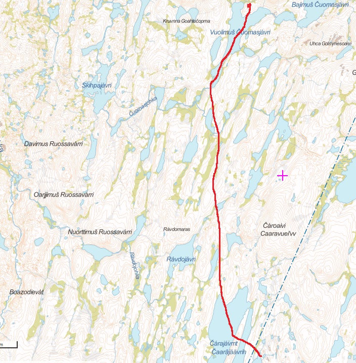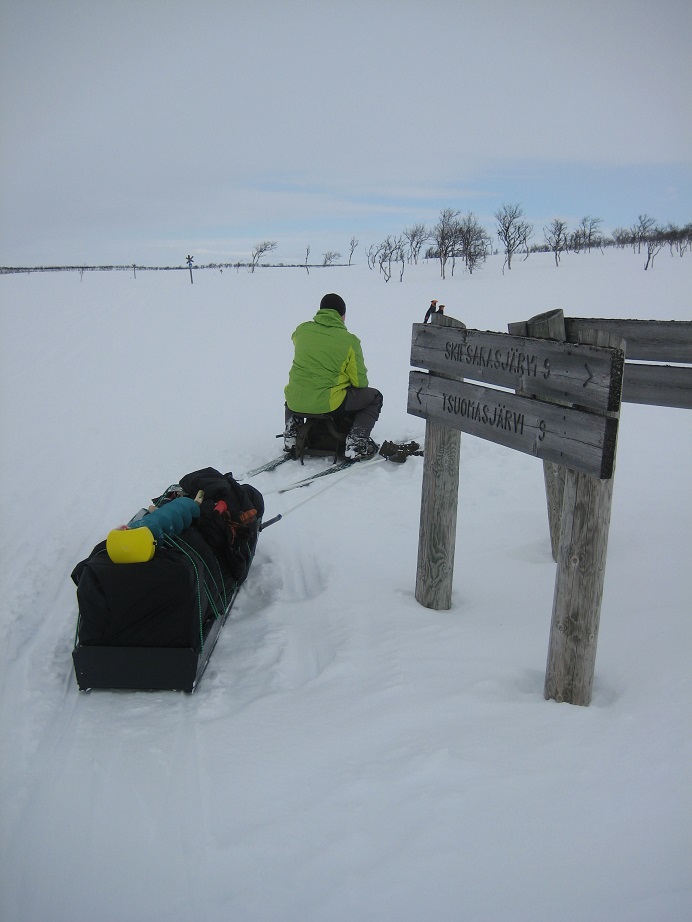 Tshaarajärven tuvassa oikein makoisat unet. Kettu oli haistanut illalla putsaamani harjuksen perkeet ensin tuvan vierustalla olleen veritipan ja sitten seurannut hajua huussille. Oli yrittänyt huussiin kaivautua hajun perässä tuloksetta, mutta sitten keksinyt alkaa tyhjentämään huussin nurkalla olleita jäisiä täysiä ulosteastioita. Pökäleitä oli pitkin hankea ja eihän siinä auttanut kuin siivoilla jätökset takaisin, kiitokset Katjalle tästä urakasta. Jätimme ketulle syrjempään mökistä sen polun varteen koivun juureen 2 keitettyä kananmunaa, niin ei tarvitse kakkatunkiota tonkia, ainakaan sinä päivänä. Laitoimme tavarat taas läjään ja siistimme tuvan. Tein hyvät sytöt seuraaville, tyhjäsin tuhka-astian ja pakkailin ahkioita sillä välin, kun Katja vielä pyyhki pöydät. | |||||||||