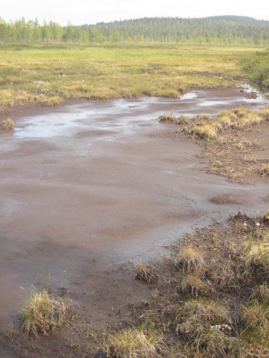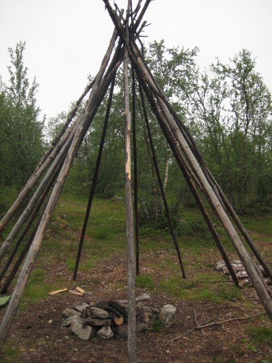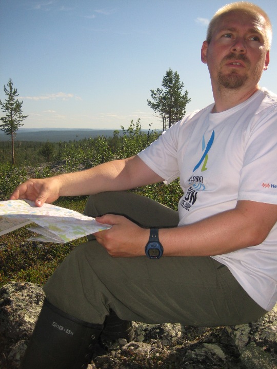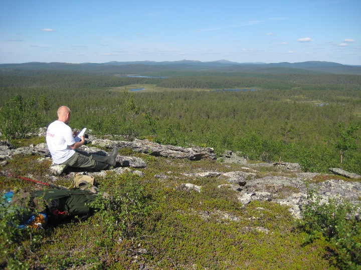 Sitten olikin vuorossa ihan puhdasverinen suunnistuspäivä. Soita sattuisi joka tapauksessa matkalle menipä mistä vain, joten yritin valita reitin, joka kiersi pahimmat suot, mutta matkaa ei silti kertyisi ihan älyttömästi. Kerrankin voi onnitella itseään onnistuneesta reitinvalinnasta ja vieläpä sen toteutuksesta. Ainoa virhe tuli sateessa illan viimeisellä siirtymällä koarvikozzajärvelle eteläisemmältä lammelta päälompolon pohjoispuolelta, jossa ei sateessa ollut edes kohtuullista teltan paikkaa havaittavissa. Alkumatkalla seurattiin lapin miesten mönkijäuraa Palojärvelle, josta Timon puheiden perusteella nostavat hyvin siikaa ja kyllähän siellä rannalla olikin kalastuksen jälkiä aika lailla. kota ja tykötarpeet tulipuineen löytyy venerannasta. Heittelin hetken rannalla ja kilon hauki puri lottoa, mutta tällä kertaa monotin hauen takaisin järveen. Jatkoimme matkaa ja heti tulikin kiva puro vastaan, jossa taimenet säikkyivät meidän ylitystä, en onnistunut vieläkään nappaamaan virrasta taimenta. Poro sen sijaan oli päättänyt samaan koskeen maallisen taipaleensa ja luuranko oli jopa jotenkin pelottavan näköinen veden alle painuneena. Päivämatkaa kertyi taas se kaksikymmentä ja risat ja olimme perillä vasta iltayhdeksältä. Käytännössä läpimärkinä sitä odotteli mäntykangasta ja tervaskantoja, joten koarvikozzajärven koivikkorinne ilman tulipuita ei ollut se mukavin näky. Pikkuhiljaa polttelin yhdestä hieman kuivahtaneesta maakoivusta ohutta lastua risuja ruokkimalla, jotta saatiin pieni hiillos nuotion pohjalle ja siitä pikkuhiljaa tuli alkoi ottaa valtaa märistä puista. Pari tuntia siinä vierähti ennen kuin tuli jo jonkin verran myös kuivatti vaatteita, eikä vain savunnut ja sihissyt. Kalastaminen jäi valitettavasti väliin sateen takia, vaikka taimenia olisi varmasti ollut tuloillaan tästäkin järvestä. Emme saaneet kaikkia varusteita kuivaksi ja yön aikana sateli lisää kastellen teltan päällisen ja jopa muutamasta kohdasta valuttaen teltan sisälle. Alkaa olla aika katsella kunnon majoitetta.. |