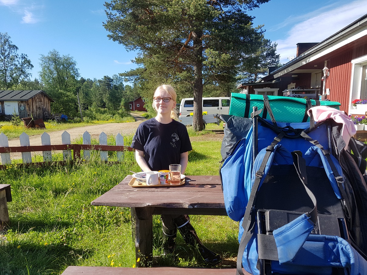 Ruusa herätteli aamulla seitsemän nurkilla ja käytiin pienellä aamulenkillä, jonka aikana kävi viimeistään selväksi, että tänä kesänä hyttysiä riittää myös Lapin korkeuksilla. Kostea ja viivästynyt kesän tulo oli tarjonnut otolliset olosuhteet itikoiden ja muiden inisijöiden lisääntymiselle. Mökin sisällä saatiin Thermacellillä itikat tapettua ja sellaisen pakkasin myös rinkan taskuun kotateltan kutsumattomia vierailijoita varten. Ahkun tuvalta varailtiin jo illalla puuroaamiainen aamuksi ja puoli yhdeksältä marssittiin rinkkojen kanssa terassipöytiin puuron syöntiin. | ||||||||