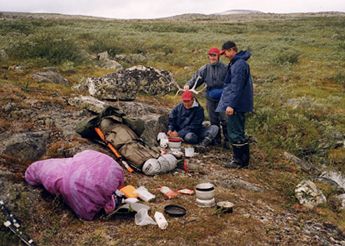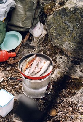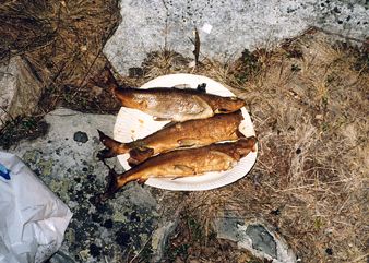 Illan tunteina ilmestyi Kuopiolainen mieskaksikko tulille, olivat saaneet muutaman harrin Porojärvestä ja nukkuivat teltassa kämpän vieressä. Aamulla tarjottiin kaveruksille vielä kalasoppaa jota keittelimme lopuista harreista, näytti maistuvan. Ottivat suunnan gps navigaattoriin ja läksivät kohti siettinjärveä. |