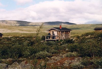 Jogaksen tupa näkyi pienenä pisteenä Porovaaran rinteeltä. Otimme suunnan ja marssimme hyvää kyytiä tuvalle, tuuli oli taas yltynyt melkein mysrkylukemiin. Majalla lämmitimme heti pesuvettä ja suoritimme aika hyytävän peseytymisen tuvan seinustalla. |