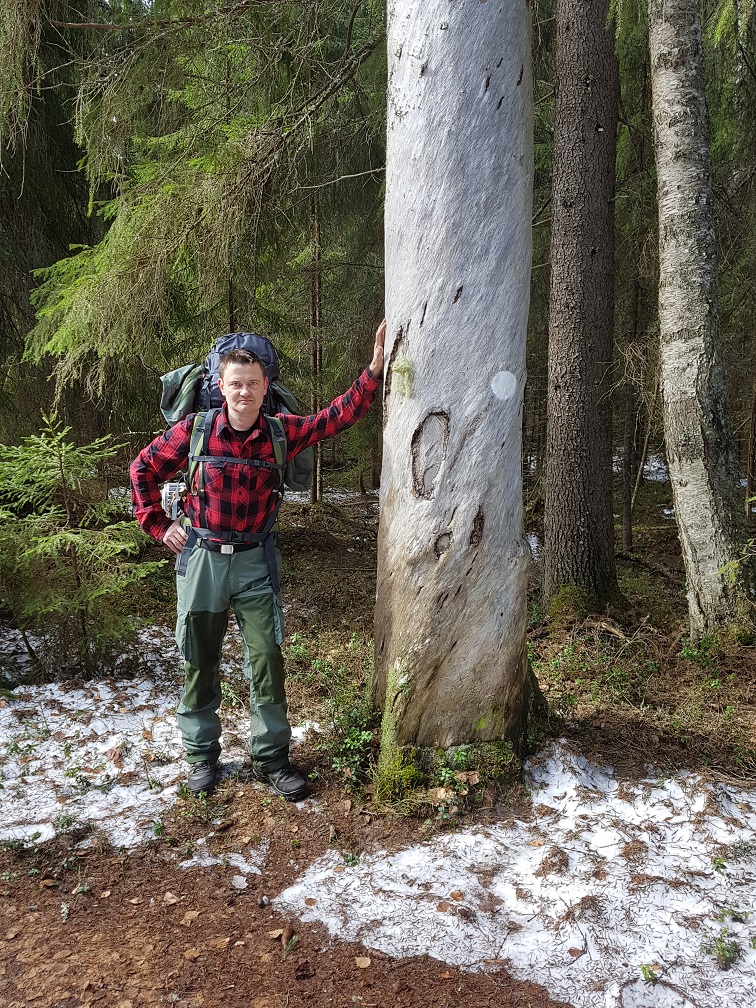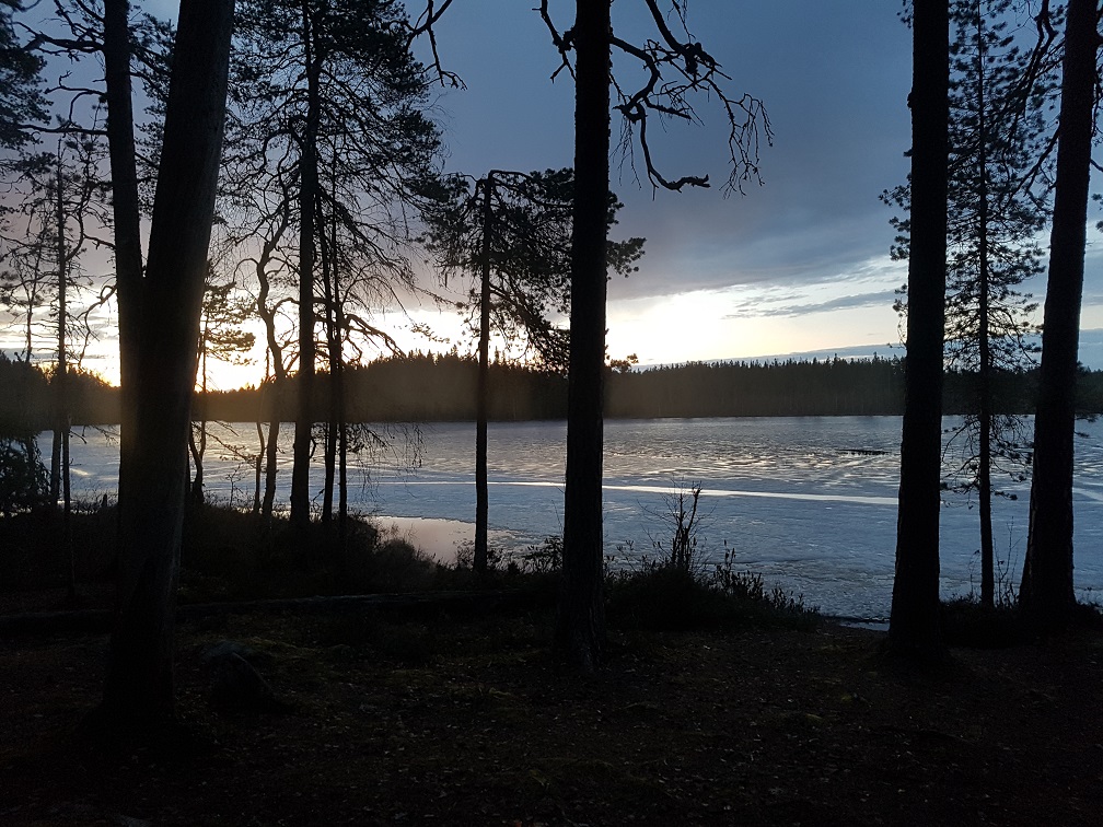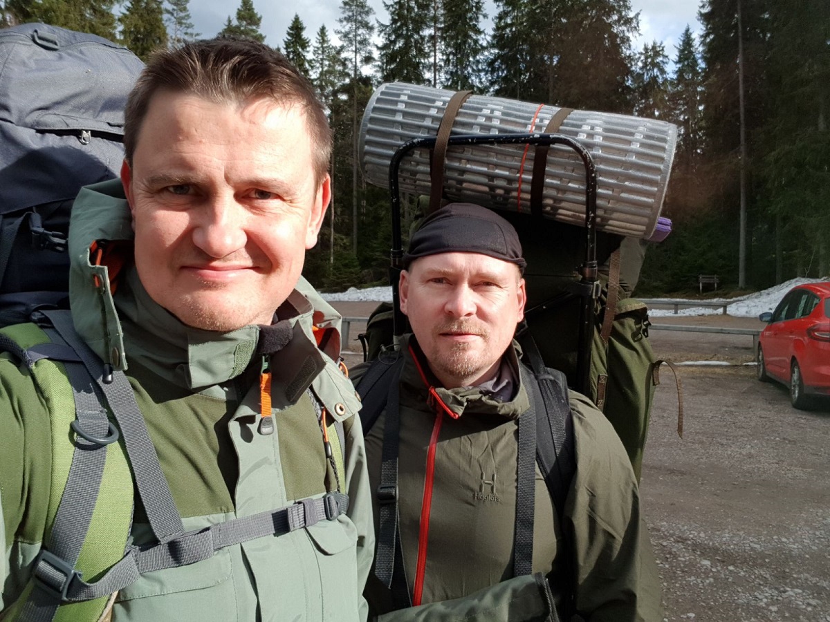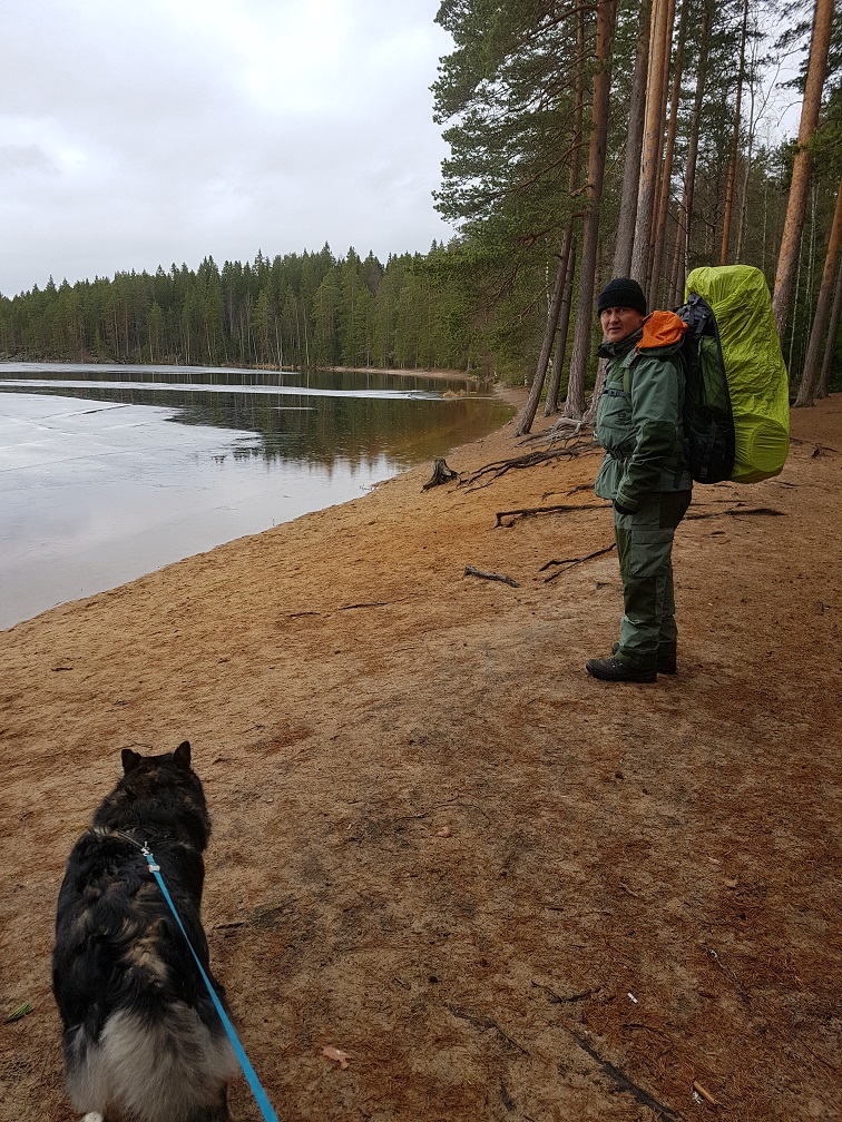 Edellisen Vapun kelit eivät jättäneet niin pahoja muistoja mieleen, etteikö toinenkin Wappumarssi olisi kiinnostanut. Tällä kertaa suunnattiin Janin mökillä Juupajoella vietetyn etäpäivän päätteeksi Seitsemisen luontokeskukseen ja matkalla heitettiin toinen auto lähelle liesijärven telttailualuetta vievän metsäauotien varteen. Kello kävi kuuden pintaan illalla kun saimme rinkat pakkailtua parkkipaikalla, jossa oli vain yksi auto meidän lisäksemme parkissa. Valitsimme harjun Lännenpuoleisen polun, jota pitkin etenimme, kunnes polku erkaantuu kohti Iso-kivijärveä ja kapusimme harjun yli. Lunta oli vielä paikka paikoin ja maasto oli kostean oloista. Polku Pitkäjärvelle on kaunista vanhan metsän ja suoalueiden välillä vaihtelevaa maastoa. Puolivälissä on kauniilla paikalla tulentekopaikka aivan rantakivikossa, Kivijärven rannassa. Välillä polku kulkee myös talousmetsässä ja yhden pihapiirin läpi ennen saapumista tielle, joka vie Pitkäjärven rantaan. Rannassa on varauskämppä, jossa oli porukkaa Vapun vietossa. Kämpän läheisyydessä on myös vanha talli, jossa hevosmiehet ovat säilyttäneet hevosiaan säältä suojassa. Jatkoimme kävelyä järven puolivälissä sijaitsevaan Honkaniemeen. Laitoimme tulilla illalliseksi esivalmistelemamme juuresmakkaranyytit, jotka olivatkin erinomaisen maukkaat. | |||||||||||||||||||||||||||||