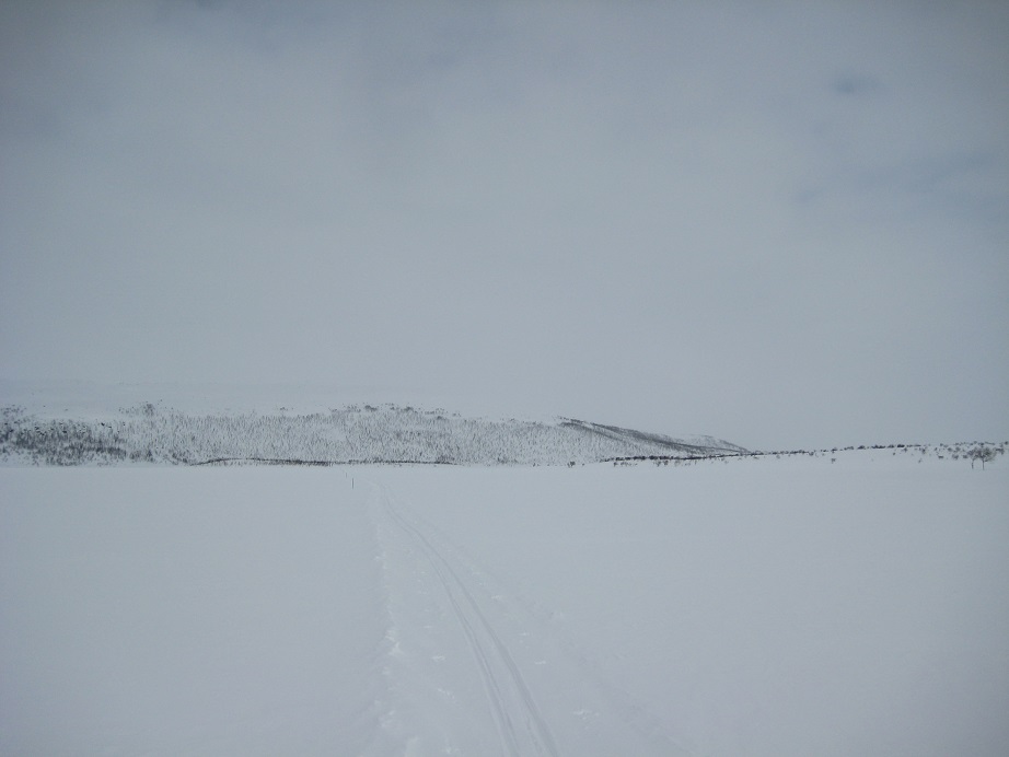 Lähdimme tuvalta puoli kymmenen jälkeen hiihtelemään ketun jälkiä seuraten talvireitin pohjaa samalla haeskellen. Uutta lunta oli satanut sen verran, että kelkan kovettama reitti oli aina välillä hakusessa, vaikka viitoitus näyttikin pääsuunnan kohti kelkkareitin yhtymäkohtaa. Kettu oli ovelasti tehnyt yllätyshyökkäyksiä koivujen juurelle riekkopaistin toivossa. Riekot ilmeisesti tekevät usein kieppinsä koivun läheisyyteen. Saavuimme kelkkauran varteen ja pidimme mehustelutaukoa ennen yhdeksän kilometrin helpompaa hiihtopätkää. Reitillä suksi luisti ihan eri malliin mitä kertaakaan aiemmin viikolla ja ensimmäistä kertaa alamäessäkään ei tarvinnut aina lykkiä lisää vauhtia. Parin tunnin jälkeen olimmekin jo kohdassa, josta hiihtoura erkanee kohti Tsuomaksen tupaa. Siinä näkyi edellisenä päivänä edellämme yksin hiihtäneen naisen ahkion jälki, josta olikin hieman vielä apua etenemiseen. Tupa on ovelasti piilossa lähes viimeiseen asti nyppylän takana ja jos ei tietäisi siellä tupaa olevan, niin ei varmasti sitä osaisi olettaa. Upea Tsuomasvarri nuosee heti tuvan takana muhkuraisine rinteineen avotunturiksi. Komealla paikalla on tämäkin autiotupa.