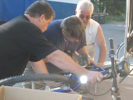 Nokian tukiasemia Suomessa. Tarkoitus oli iltalenkillä lähteä näköalapaikalle kiikaroimaan, mutta onnistuin lukitsemaan Olavin pyörän lukon, johon lähin avain oli Tuusulassa. Otin pyörän kainaloon ja ajeltiin Näsbyn kyläkaupalle, jossa kolme avuliasta miestä työsti lukkoa 45 minuuttia ja antoihan se lopulta periksi.